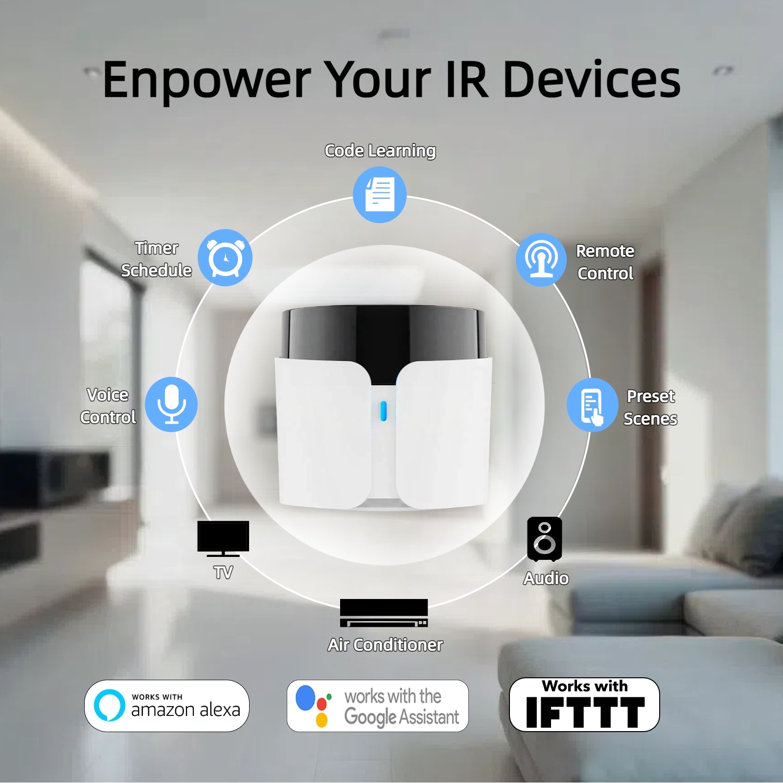 【Hands-Free Voice Control】Compatible with Amazon Alexa and Google Home, RM5plus allows you to control your IR devices using simple voice commands. Turn on the TV, change channels, or adjust AC—all without lifting a finger. Experience true hands-free smart living.