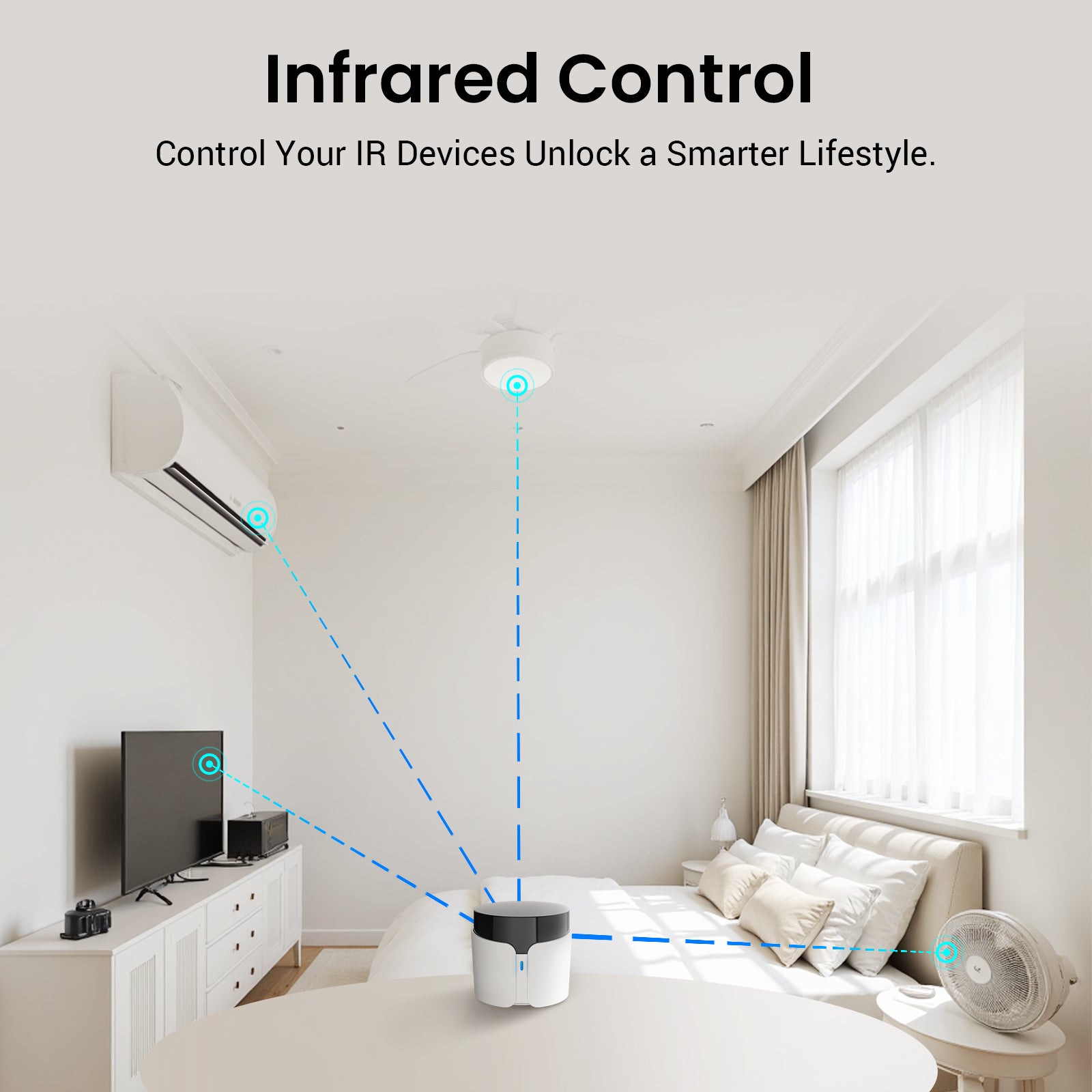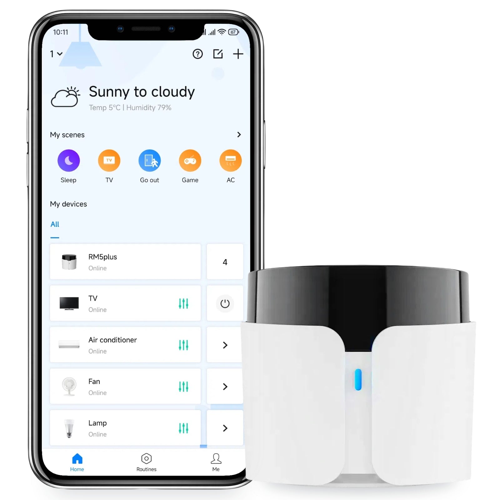 【All-in-One Smart Remote Hub】RM5plus is our 5th-generation IR universal remote for controlling over 5,000 infrared appliances—TVs, air conditioners, fans, set-top boxes, and more. Say goodbye to cluttered remotes and enjoy seamless smart control across your home.