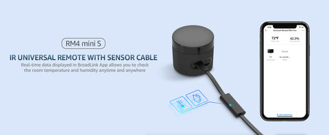 - RM4 mini and Sensor Cable Set - This set comes with RM4 mini and HTS2 Sensor Accessory that integrates the functions of temperature and humidity sensor and power cable. Connect the sensor cable between the RM4 mini and USB adapter just like an ordinary USB cable, at the control panel of RM4 mini in BroadLink app, it will display temperature and humidity of the room where the sensor located. Set the triggers, such as turn on your air conditioner automatically when the temperature rises.